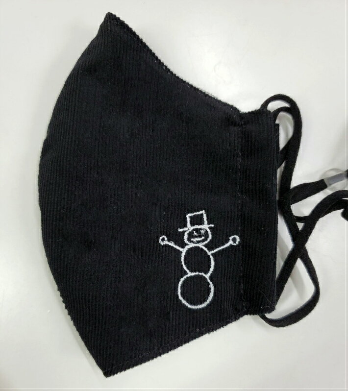 おしゃれマスク 刺しゅう入りマスク 3サイズ 日本製 ハンドメイド コーデュロイ素材 雪だるま かわいいマスク 洗えるマスク 肌に優しい